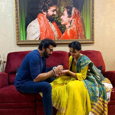 PHOTOS: काम्या पंजाबीने करवाचौथच्या निमित्ताने नवऱ्याकडून काढून घेतली हातावर मेहंदी, पहा फोटो