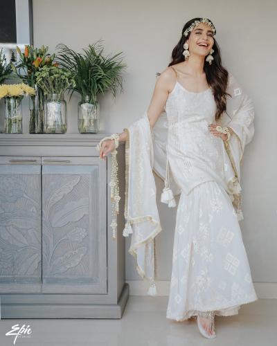 मौनी रॉयसारखीच करिश्मालाही गोव्यात हळद लागली. यावेळी करिश्माने व्हाईट कलरचा शरारा घातला होता. यात ती कमालीची सुंदर दिसत होती.