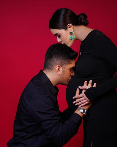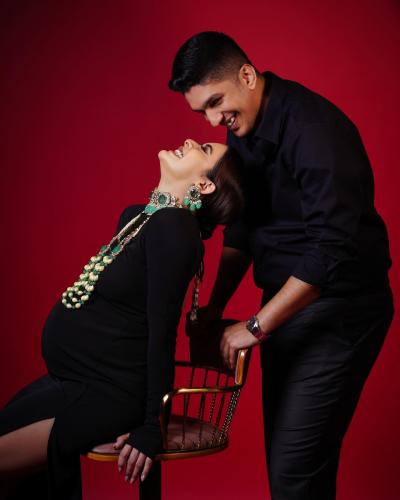 सनाने मॅटर्निटी फोटोशूटमध्ये पतीबरोबर रोमँटिक पोझ दिल्या आहेत. काळ्या रंगाच्या आऊटफिटमध्ये तिने हे फोटोशूट केलं आहे.
