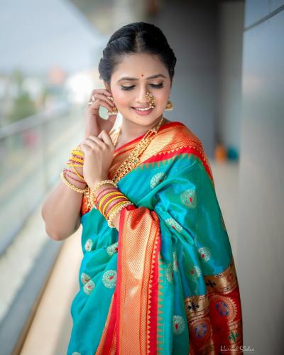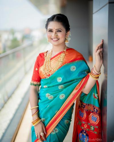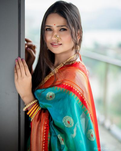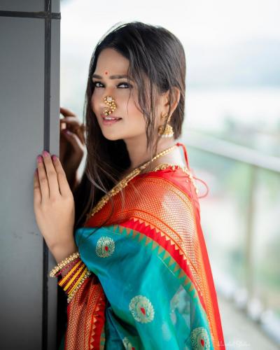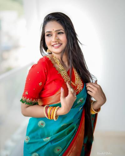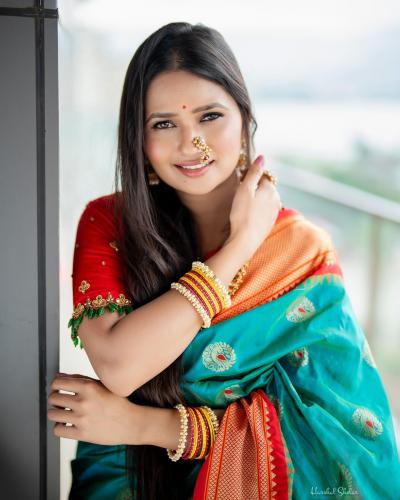 हिरव्या रंगाच्या साडीत गौमतीने पारंपरिक लूक केल्याचं दिसत आहे. नाकात नथ आणि कानात झुमके असा साज केला आहे.
