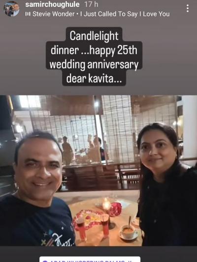 लग्नाच्या २५व्या वाढदिवसानिमित्त समीर पत्नीला कँडल लाइट डिनरला घेऊन गेला होता. त्यादरम्यानचाच फोटो शेअर करत त्याने पत्नीला लग्नाच्या वाढदिवसाच्या भरभरून शुभेच्छा दिल्या. (फोटो इन्स्टाग्राम)