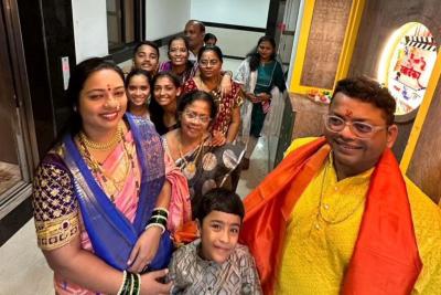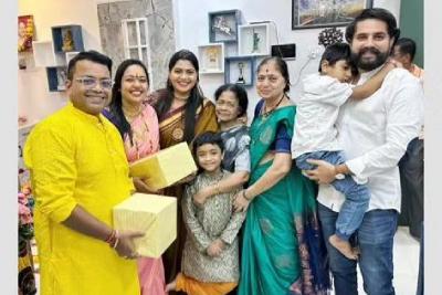 या फोटोंमध्ये त्याचे कुटुंबीय आणि हास्यजत्रेतील कलाकार दिसत आहेत.