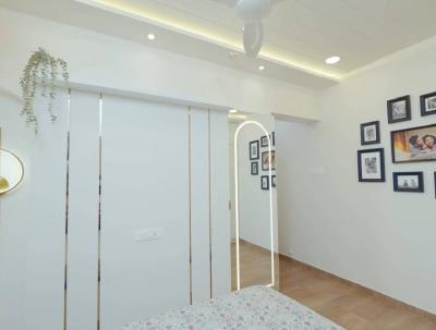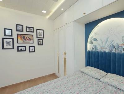 बेडरुममध्ये एका बाजूला बेड आणि दुसऱ्या बाजूला फर्निचर केल्याचं दिसत आहे.