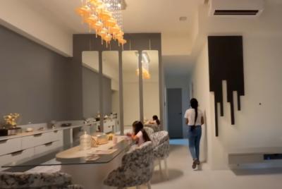 लिव्हिंग रूमसोबतच डायनिंग एरिया तयार केला आहे. जिथे कुटुंब आणि पाहुणे आरामात बसून चवदार जेवणाचा आनंद घेऊ शकतात.