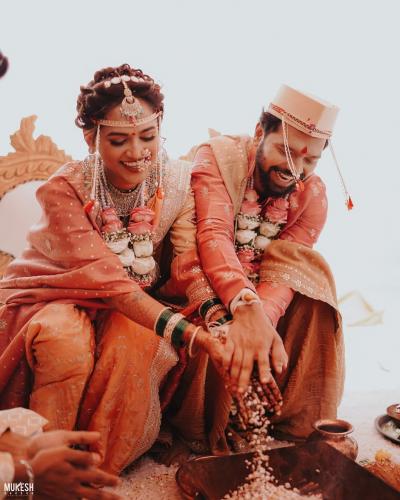 सोनालीने पिवळ्या रंगाची नऊवारी नेसली होती. तर अभिषेकने धोतर घातलं होतं.