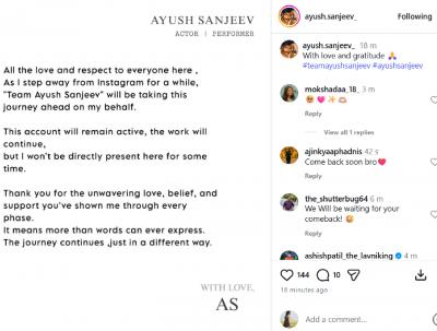 आयुषच्या पोस्टवर चाहत्यांनी कमेंट करत 'तू बिग बॉस मध्ये जातोय' असा अंदाज लावला आहे. तसंच त्याला या प्रवासासाठी शुभेच्छा दिल्या आहेत. अद्याप वाहिनीकडून किंवा आयुषने यावर अधिकृत कन्फर्मेशन दिलेलं नाही.