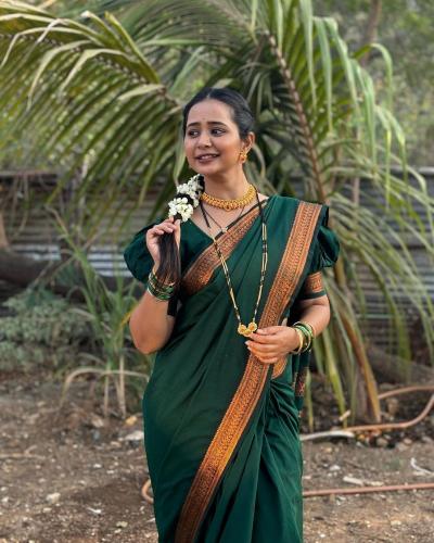 गौरीने हिरव्या रंगाच्या साडीत छान नटूनथटून फोटोशूट केलं आहे. तिच्या या फोटोवर अभिनेता निरंजन कुलकर्णी याने कमेंट केली आहे.