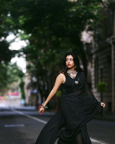 काळी साडी अन् बोल्ड अदा! सखी गोखलेच्या लूकवर चाहते फिदा