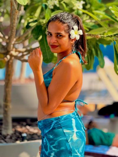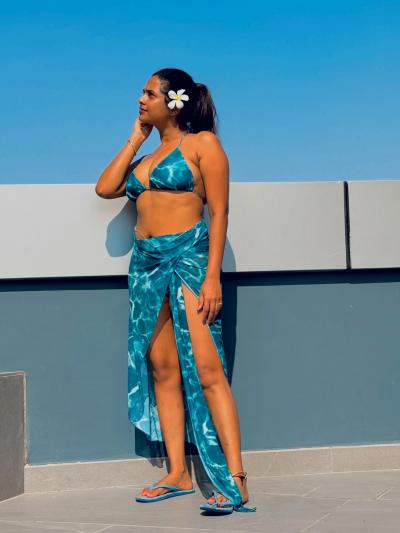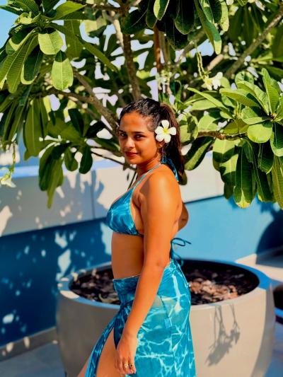 या फोटोंमध्ये तिने निळ्या रंगाची बिकिनी परिधान केल्याचं दिसत आहे. तिचा बोल्ड लूक फोटोंमध्ये दिसत आहे.