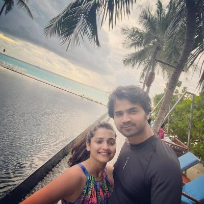 ही अभिनेत्री म्हणजे हृता दुर्गुळे (Hruta Durgule). हृता पती प्रतीक शाहसोबत मालदीव व्हॅकेशन एन्जॉय करत आहे. प्रतीक फारसा कॅमेऱ्यासमोर येत नाही. तरी त्यांचा एक सेल्फी हृताने पोस्ट केला आहे.