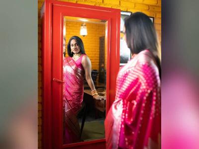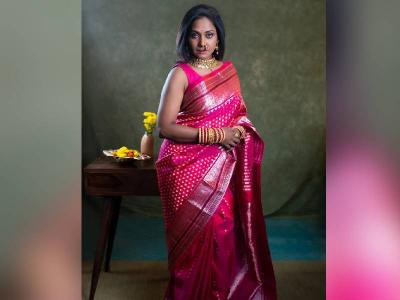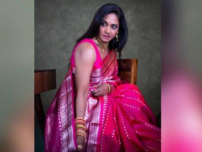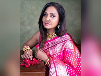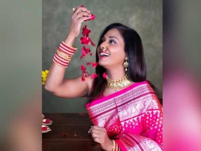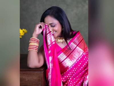 मेघाने शेअर केलेल्या फोटोमध्ये तिने गुलाबी रंगाची साडी नेसली आहे. सोबतच त्याला साजेसा मेकअप केला आहे.