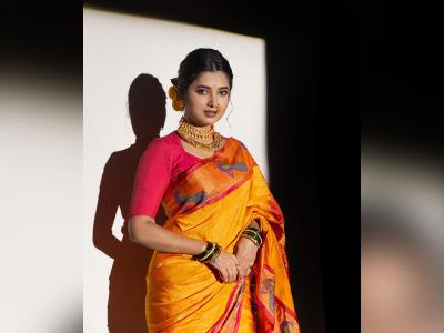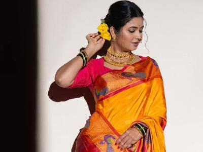 प्राजक्ताने पिवळ्या काठापदराच्या साडीमध्ये फोटोशूट केलं आहे.