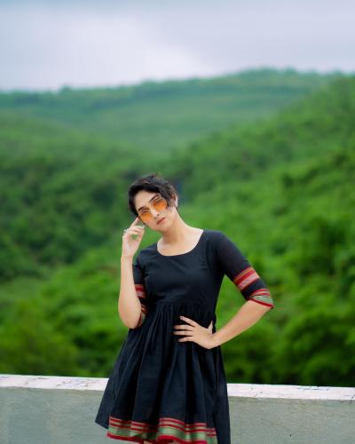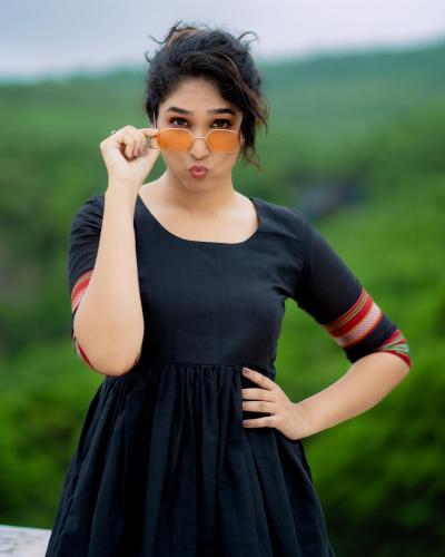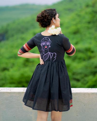 प्रियदर्शिनीने परिधान केलेल्या या काळ्या वनपीसला पारंपरिक टच आहे. ड्रेसच्या मागच्या बाजूला महिलेच्या चित्राची डिझाईन आहे. तिचा हा हटके ड्रेस तरुणींच्या पसंतीस पडला आहे.