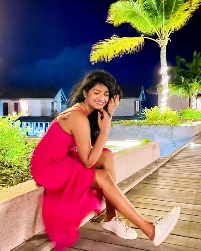 रसिकाने लाल रंगाच्या वनपीस गाऊनमध्ये हे फोटोशूट केलं आहे.