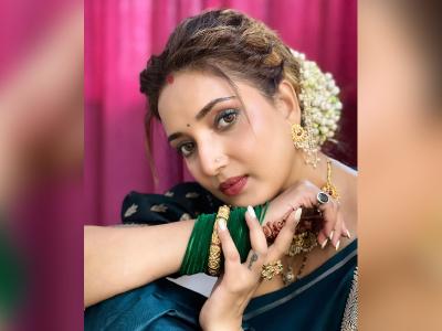 मोरपिशी रंगाच्या साडीत तिने हे छान फोटोशूट केलं असून तिचा लूक चर्चेत येत आहे.