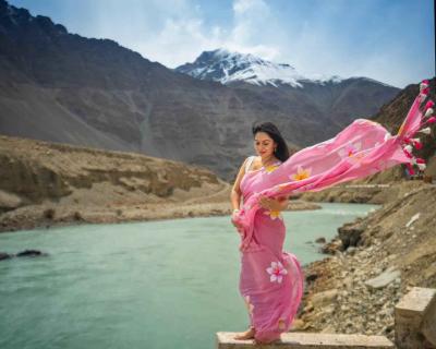लडाखचं नयनरम्य दृश्य अन् गुलाबी साडीत मराठी अभिनेत्रीचं सुंदर फोटोशूट!