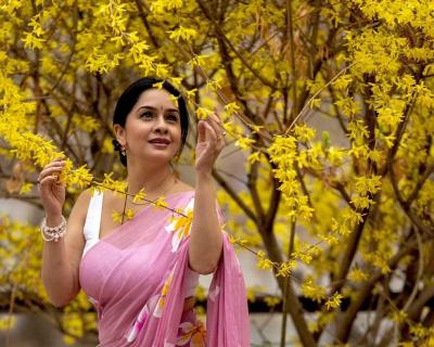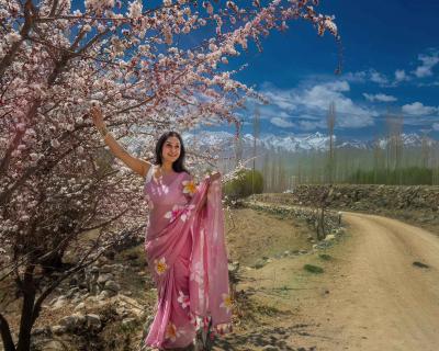 लडाखमधील एका ठिकाणी झाडाखाली तिने काही फोटो काढले आहेत. झाडावरील टवटवीत फुलं आणि सुखदाचं सौंदर्य एकरुप झालेलं दिसत आहे.