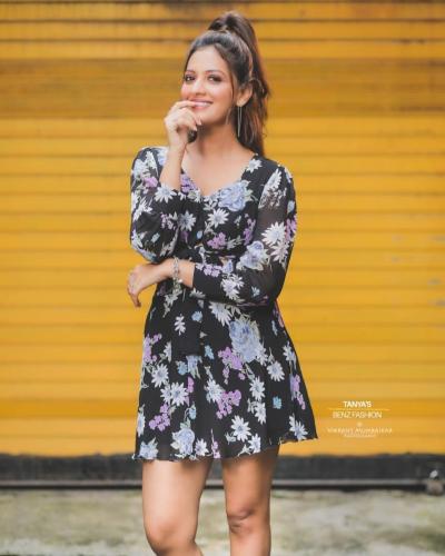 या फोटोंमध्ये तेजश्री काळ्या रंगाच्या फ्लोरल ड्रेसमध्ये दिसतेय. या ड्रेसमध्ये तिने एक से बढकर एक हटके पोझ दिल्या आहेत.
