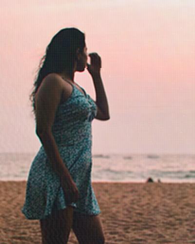आकाशी रंगाच्या सुंदर अशा शॉर्ट वनपीसमध्ये तिचं सौंदर्य खुलून आलं आहे. त्या हवेत उडणारे तिचे मोकळे केस सौंदर्याची शोभा आणखी वाढवत आहेत. प्रिय नवऱ्यानेच तिचे हे फोटो काढलेत. 'बीच वाली फोटो' असं कॅप्शन तिने दिलं आहे.