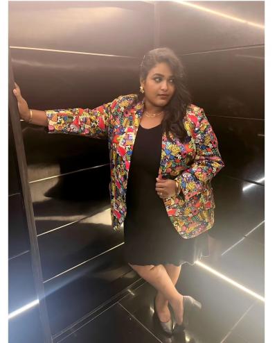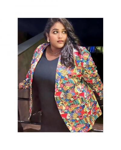 या फोटोमध्ये वनिताने ब्लॅक रंगाचा वनपीस ड्रेस परिधान केला आहे. त्याच्यावर तिने मल्टीकलर असलेलं ट्रेंडी जॅकेट घातलं आहे.