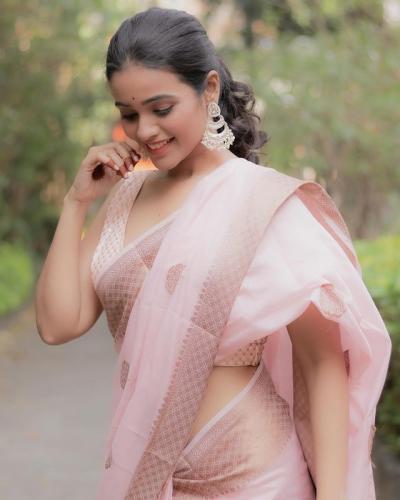 फोटोंंमध्ये गुलाबी साडी त्यावर साजेशी नाकात नथ, कानात झुमके तसेच मोकळे केस असा अभिनेत्रीचा लूक पाहायला मिळतो आहे.