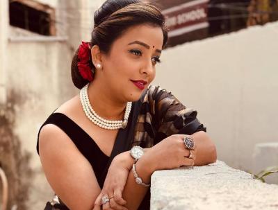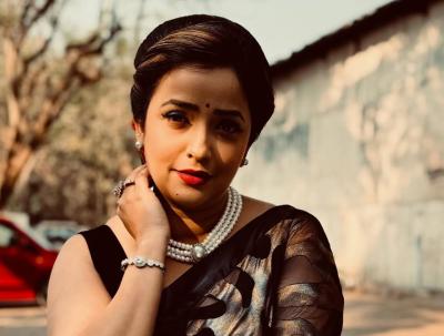 या फोटोशूटसाठी काळ्या रंगाची साडी,गळ्यात मोत्याचा हार असा लूक तिने केला आहे.