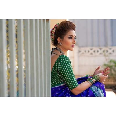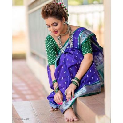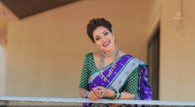 अलिकडेच रुपालीने निळ्या रंगाच्या नऊवारी साडीत फोटोशूट केलं आहे.