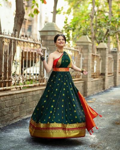 मराठमोळ्या लूकला तिने वेस्टर्न टच दिल्यामुळे हे फोटो चर्चेत येत आहेत.
