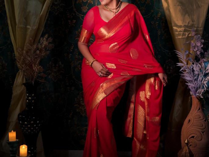 मराठमोळी निर्माती श्वेता शिंदे लाल रंगाच्या साडीत दिसतेय खूपच ग्लॅमरस, पाहा फोटो