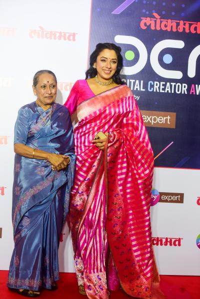अनुपमा फेम रुपाली गांगुलीने अवॉर्ड नाईटमध्ये आपल्या आईसोबत हजेरी लावली होती. गुलाबी रंगाच्या साडीत रुपाली सुंदर दिसत होती.