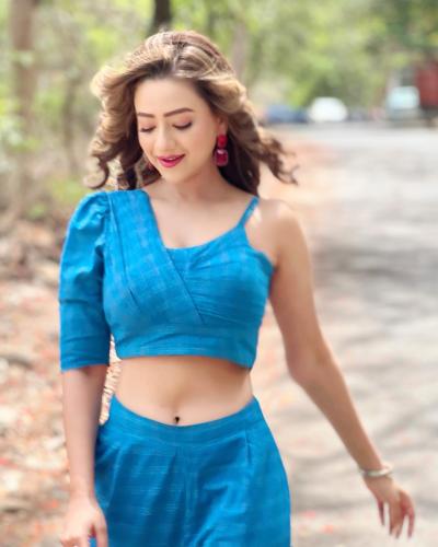 या फोटोंमध्ये मदालसा निळ्या रंगाचा क्रॉप टॉपमध्ये दिसत आहे. (फोटो: इंस्टाग्राम)
