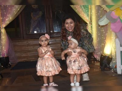 तसेच देबिना बॅनर्जीसुद्धा दोन्ही लेकींसह या पार्टीमध्ये आली होती. देबिना हिने दोन्ही मुलींना एकसारखीच फ्रॉक घातली होती. तिने पापाराझींनाही मनसोक्त पोझ दिल्या.