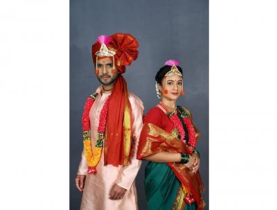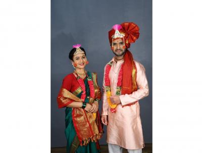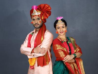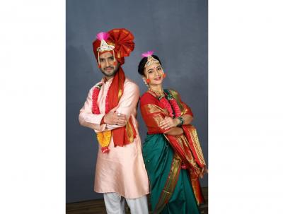 नित्याने हिरव्या - लाल रंगाची साडी तर अधिराजने गुलाबी रंगाचा कुर्ता परिधान केलाय