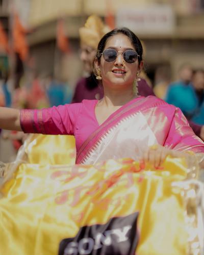 कोल्हापूरला गुढीपाडव्यानिमित्त जी शोभायात्रा निघाली होती त्यात प्रियदर्शनी इंदलकरने ढोलवादन केलेलं दिसलं (priyadarshini indalkar)