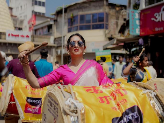 कोल्हापूरच्या गुढीपाडवा शोभायात्रेत प्रियदर्शनी इंदलकरचं ढोलवादन, पाहा फोटो