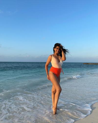Rasika Sunil समुद्र किनारी दिसली बोल्ड अंदाजात, स्विमवेअरमधील फोटो केले शेअर