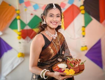हलव्यांचे दागिने परिधान करुन रेश्मा शिंदेने सुगडाची पूजा केली आहे. रेश्माने आनंदात मकरसंक्रांत साजरी करुन फोटोसाठी पोज दिली आहे
