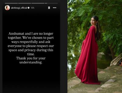 'अंशुमत आणि मी आता एकत्र नाही आहोत. आम्ही आदरपूर्वक एकमेकांपासून वेगळे होत आहोत. कृपया सर्वांनी आम्हाला प्रायव्हसी द्यावी ही विनंती.' असे तिने लिहिले.