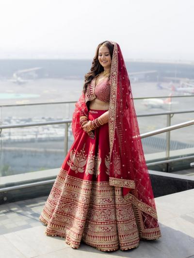 रुपलने पारंपरिक लाल रंगाचा लेहेंगा परिधान केला होता. सोनेरी मांग टिक्का, सोन्याचे दागिने आणि लाल-पांढऱ्या बांगड्यांमध्ये ती खूप सुंदर दिसत होती.