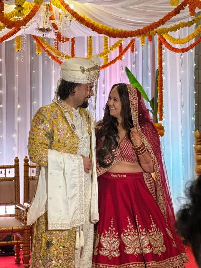 रुपलने तिच्या लेहेंग्यावर 'रुपल' आणि 'नोमिश'च्या नावाचे 'रूनोम' (#Roonom) असा हॅशटॅग असलेला कमरबंद बांधला होता.
