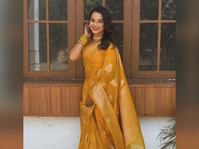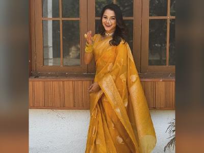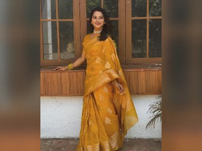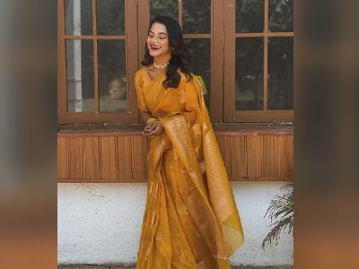 गोल्डन पिवळ्या रंगाच्या साडीत साक्षीने फोटोशूट केलं असून यात ती कमालीची सुंदर दिसत आहे.