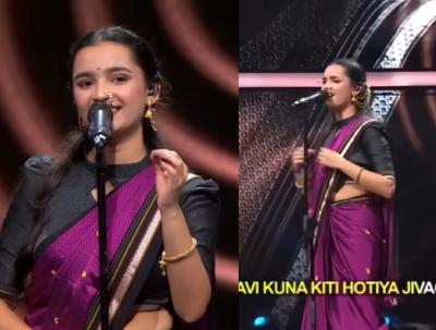 हे गाणं स्टेजवर परफॉर्म करताना तिने सुंदर लूक केला होता. काळा ब्लाऊज, जांभळी नऊवारी, नथ, कपाळी चंद्रकोर, साजेसे सोन्याचे दागिने असा तिचा मराठमोळा लूक होता.