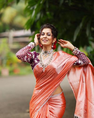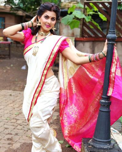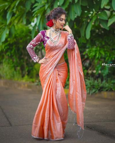 नुकतेच तिने सोशल मीडियावर डिझायनर टिश्यू सिल्क साडी नेसून फोटो पोस्ट केले आहेत.