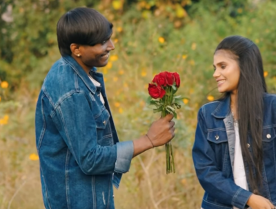 या फोटोत सूरज संजनाला गुलाबाची फुलं देऊन प्रेम व्यक्त करताना दिसत आहे.