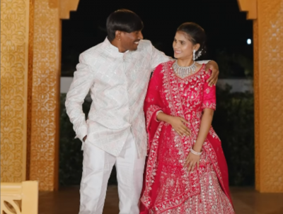 दुसऱ्या एका फोटोमध्ये संजना गुलाबी रंगाचा भरजरी लेहंगामध्ये खूपच सुंदर दिसत आहे, तर सूरजने तिच्यासोबत मॅचिंग करत पांढऱ्या रंगाचा सूट परिधान केला.