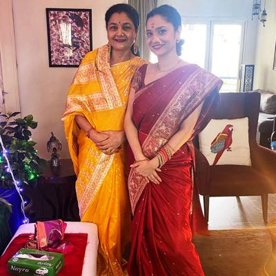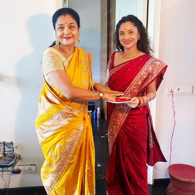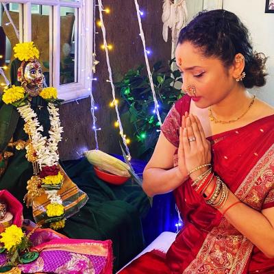 अंकितानेही आजच्या गौरीपूजनाचे फोटो सोशल मीडियावर शेअर केले आहेत. अंकिताने आपल्या आईसोबत गौरीपुजन केलं आहे.