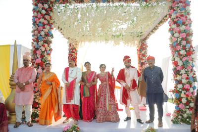 झी मराठीवरील लोकप्रिय मालिका 'वीण दोघातली ही तुटेना' या मालिकेत गोव्यातील समुद्रकिनाऱ्यावर दोन जोडप्यांच्या भव्य डेस्टिनेशन बीच वेडिंगचं चित्रीकरण करण्यात आलं आहे. मराठी टेलिव्हिजनवरील हा पहिलाच प्रयत्न असून, या नव्या उपक्रमाने मालिकेला एक वेगळं स्थान दिलं आहे.