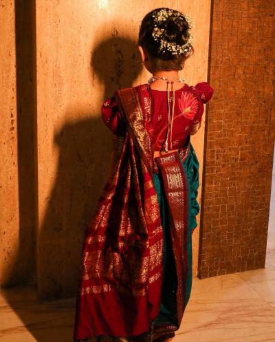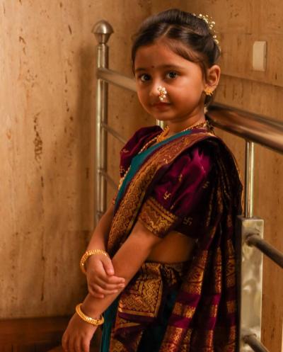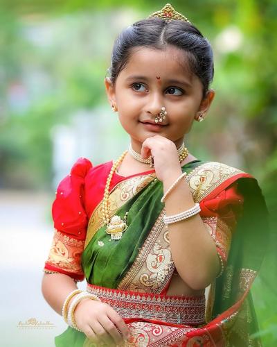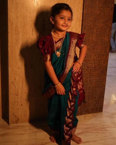 यामध्ये मायरा वायकुळ हिने नववारी साडी नेसलेली दिसते आहे.