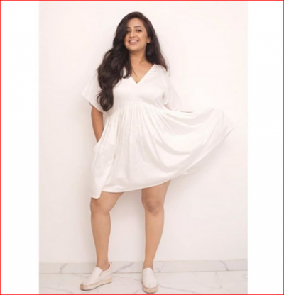 या फोटोत तिचा एरव्ही कधीही न पाहिलाला अंदाज पाहायला मिळत आहे. पांढरा रंगाचा शॉर्ट फ्रॉकमध्ये ती दिसत आहे.