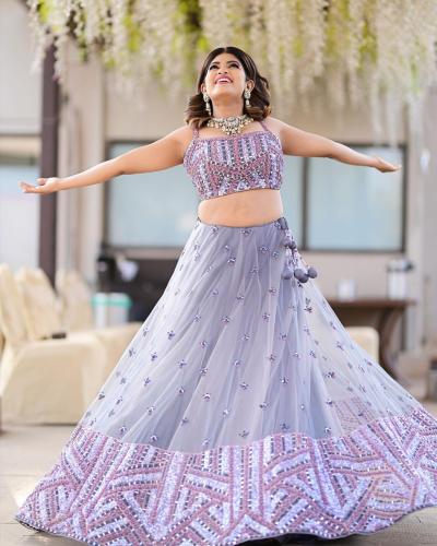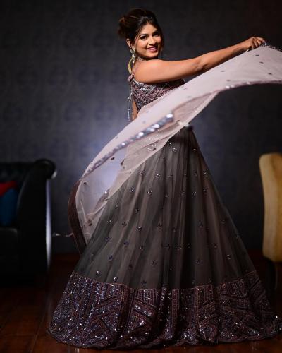 धनश्रीच्या लेहंग्यातील फोटोंना चाहत्यांची खूपच पसंती मिळते आहे.